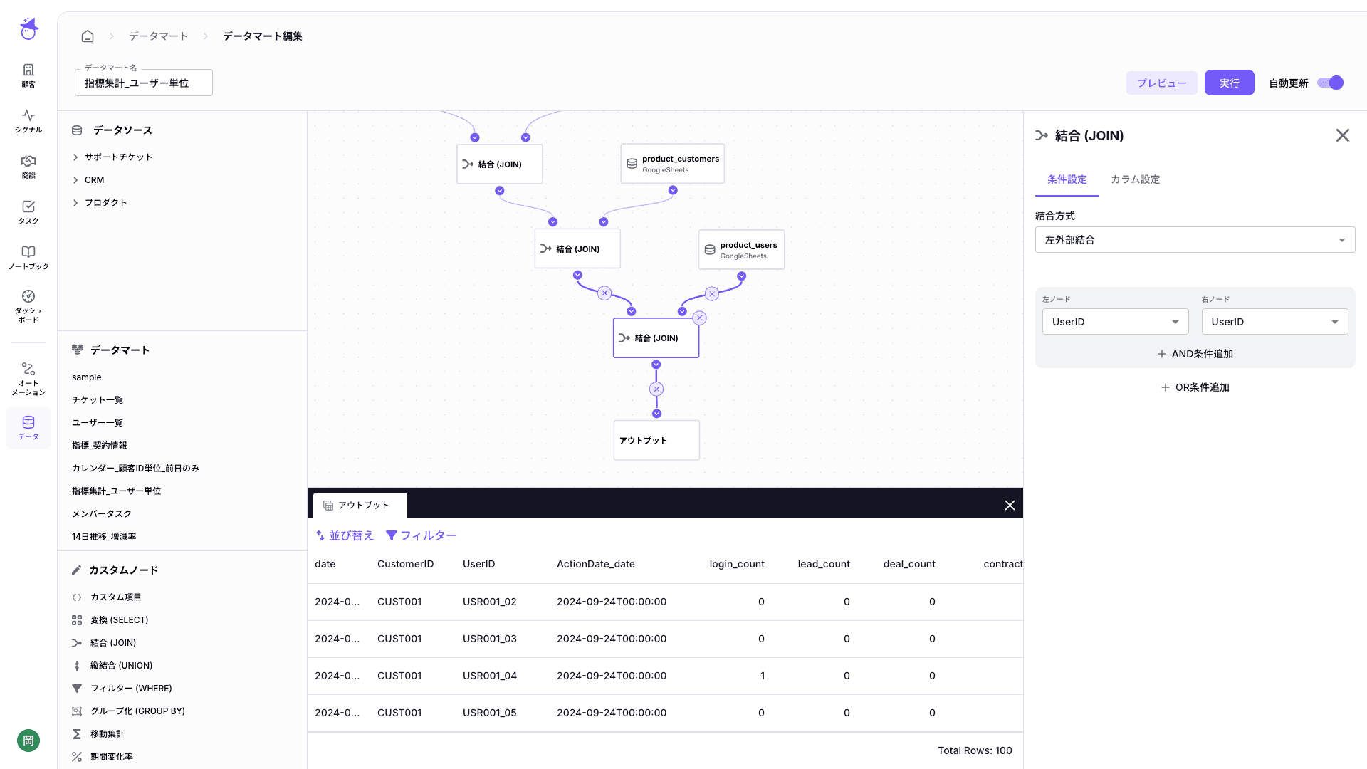 MagicSuccessのデータマート画面/ノーコードで様々なデータの統合・加工が可能