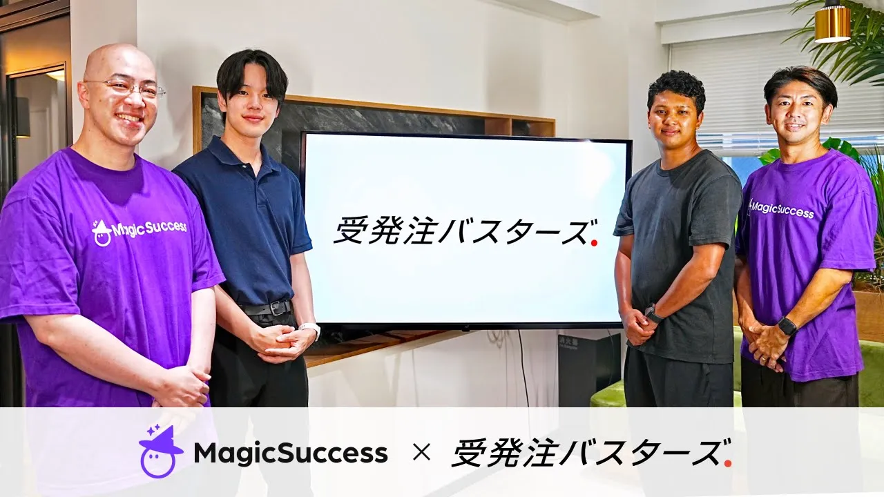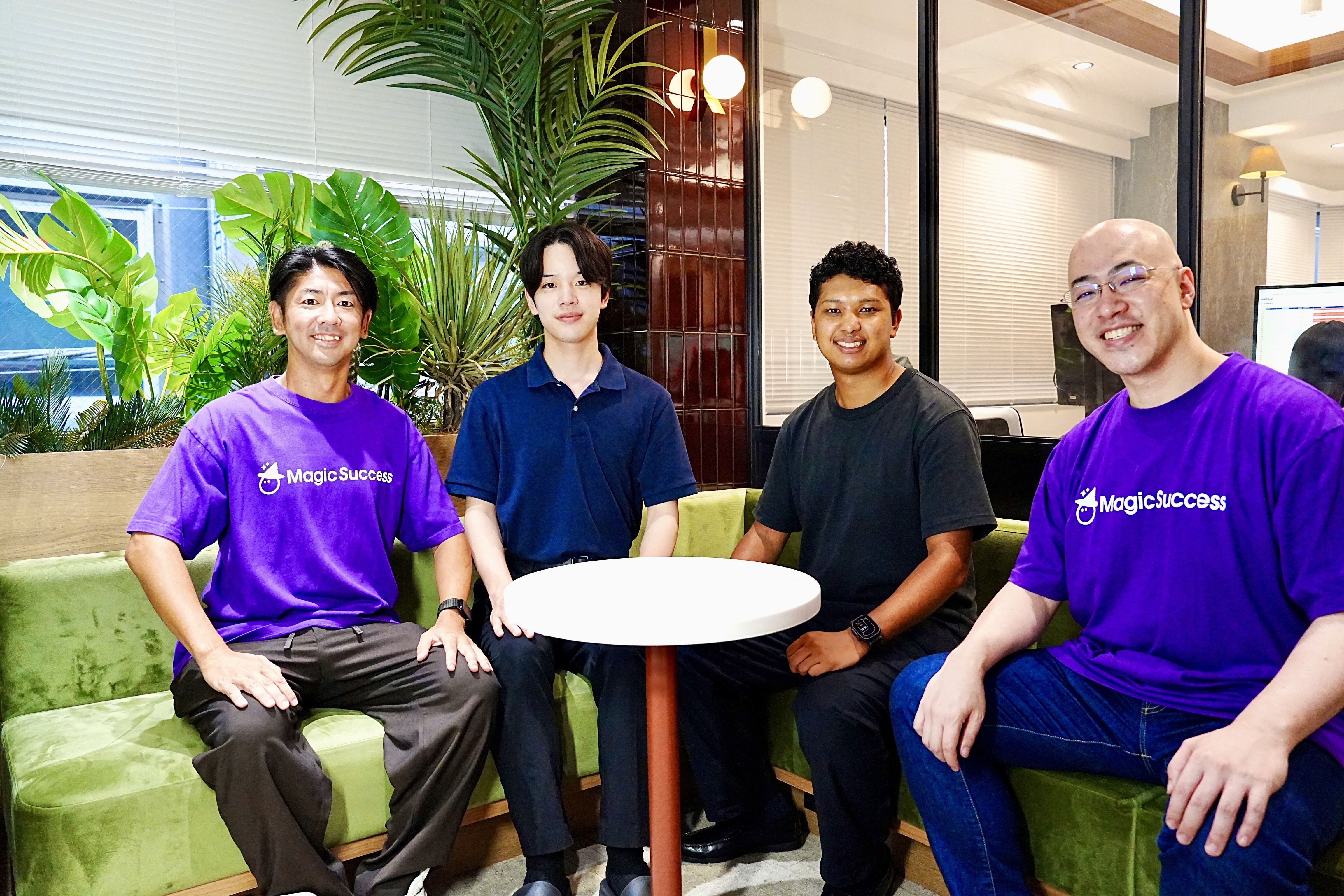 分散していた顧客情報を一元管理し、少人数でも質の高いCS業務を可能にしたMagicSuccessの活用について、カスタマーサクセス部 カスタマーマネージャーの豊田モハマドアリ英司さん(写真 中央右手)、同部カスタマーサクセス第一チーム カスタマーサクセスリーダーの児玉 柊平さん(写真 中央左手)にお話しを伺いました。